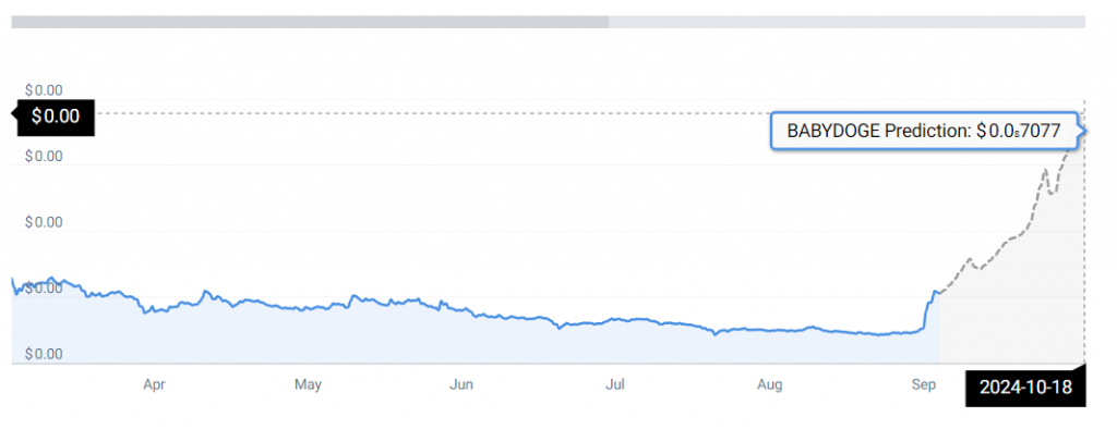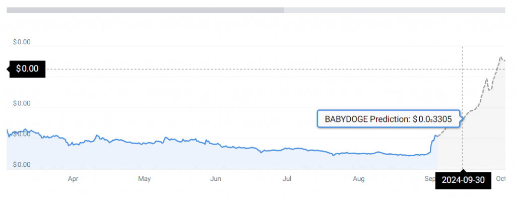 According to CoinCodex, BabyDoge may spike 60% to hit the $0.000000003305 price level.