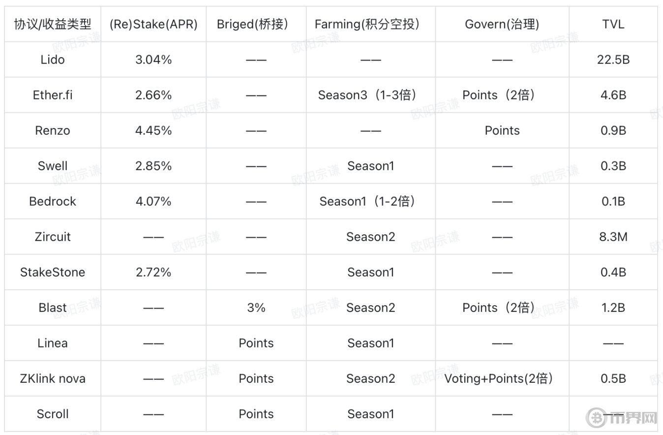 ○ ETHfi 当前各个热门协议的收益率和收益来源: