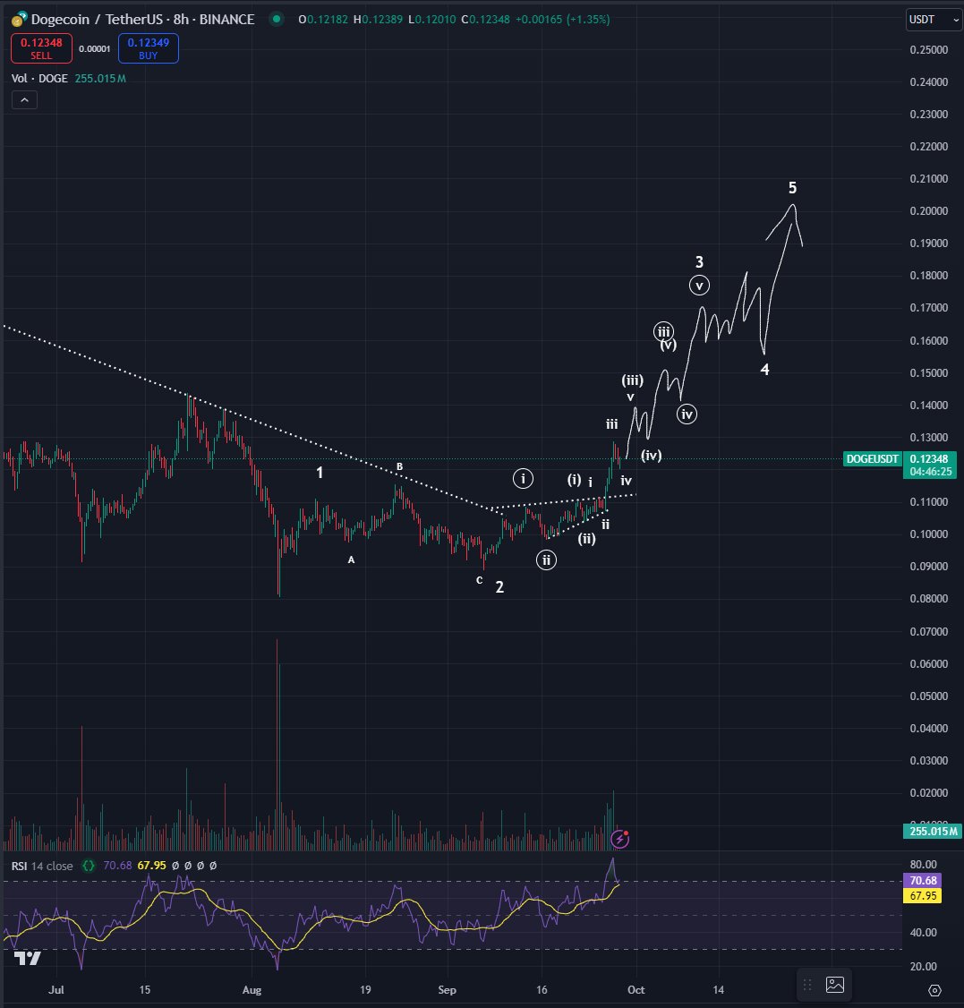 Looking at the trader’s chart, he seems to suggest that DOGE will rally above $0.20 in October. At time of writing, DOGE is trading for $0.122.