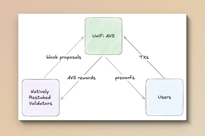 Puffer 提出 UniFi AVS,它是一个基于 EigenLayer 的解决方案,不引入其他的机制和抵押品,而是利用其以太坊“Restaking”,将UniFi 打包成一个 AVS 服务,任何在 EigenLayer 上再质押的验证者都可以参与 UniFi AVS 来提供预确认服务,并在 AVS 中设计相应的惩罚机制。
