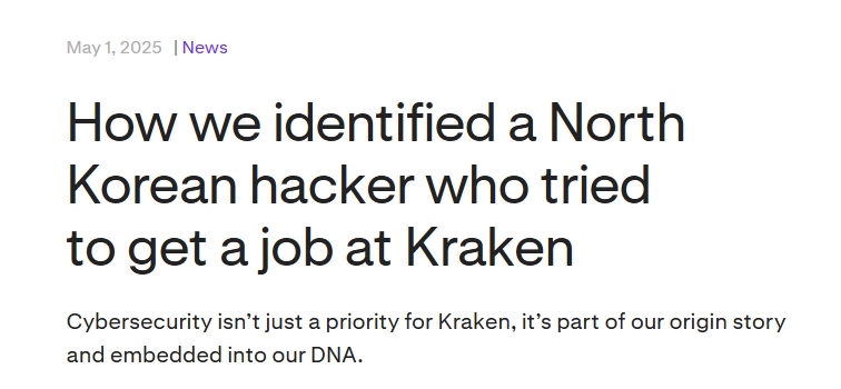 As the blockchain and cryptocurrency industry flourishes, cybersecurity has become a focal point for exchanges and users alike. As one of the leading cryptocurrency exchanges in the United States, Kraken is renowned for its exceptional trading services and robust security measures. On May 1, 2025, Kraken published an article on its official blog titled "How We Identified a North Korean Hacker Attempting to Infiltrate Kraken," detailing an incident where a North Korean hacker posed as a job applicant in an attempt to breach its internal systems. This incident not only sparked widespread discussion within the industry but also underscored the complexity of cyber threats.