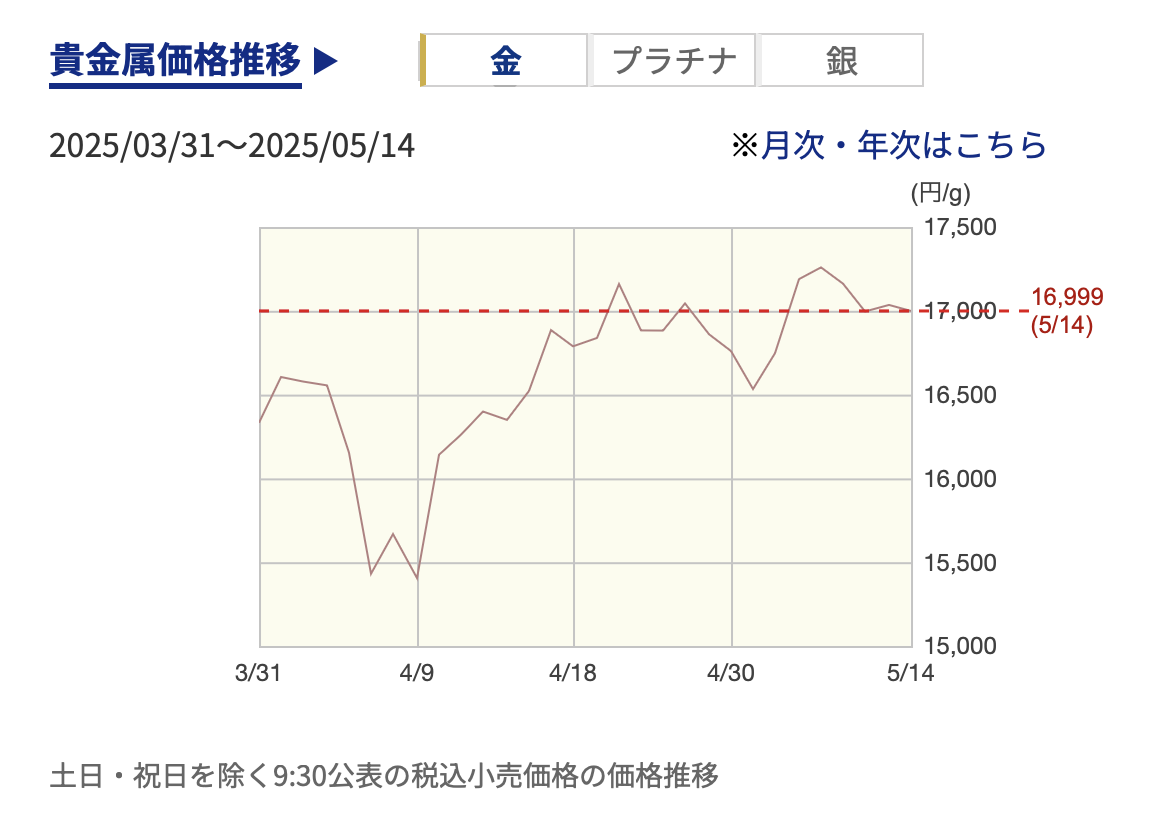NISA为私人投资者提供的免税计划使个人能够投资与黄金价格走势挂钩的产品,但据报道,直接投资也在增加。田中贵金属技术公司对交易商间价格的注释(翻译):“美国总统特朗普考虑解雇美联储主席鲍威尔的报道也提振了金价,在22日达到了15,561日元的月度高点。此后,美国总统特朗普否认了解雇美联储主席的想法,由于对中美贸易摩擦缓和的预期,抛售盛行,当月收于15,198日元。”
