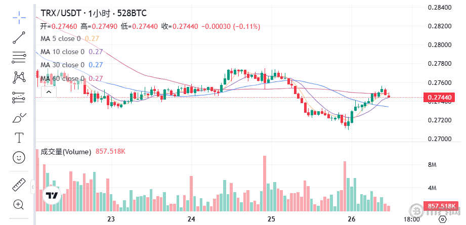 从币界网11月26日TRX实时技术分析角度看,波场币价格正在悄然重写其图表故事。