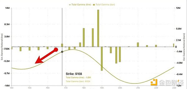 期权市场的狙击:SpotGamma的数据指出,MicroStrategy(MSTR)面临着典型的“过度杠杆化目标遭受攻击”的局面。大量看跌期权(Long Puts)聚集在170美元下方。这种负Gamma效应意味着,如果比特币价格进一步下跌,做市商的对冲行为可能会加速MSTR、Coinbase等加密概念股的下跌,甚至拖累主要股指。