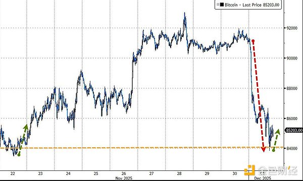 宏观逆风:随着日本央行加息预期的升温,套利交易(Carry Trade)面临平仓压力,作为投机性最强的资产类别,加密货币首当其冲。比特币日内一度在84,000美元附近寻找支撑,遭遇了自3月3日以来最糟糕的单日表现;以太坊更是跌破3000美元大关。
