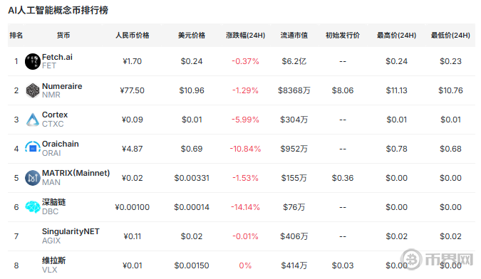 AI概念币排行榜