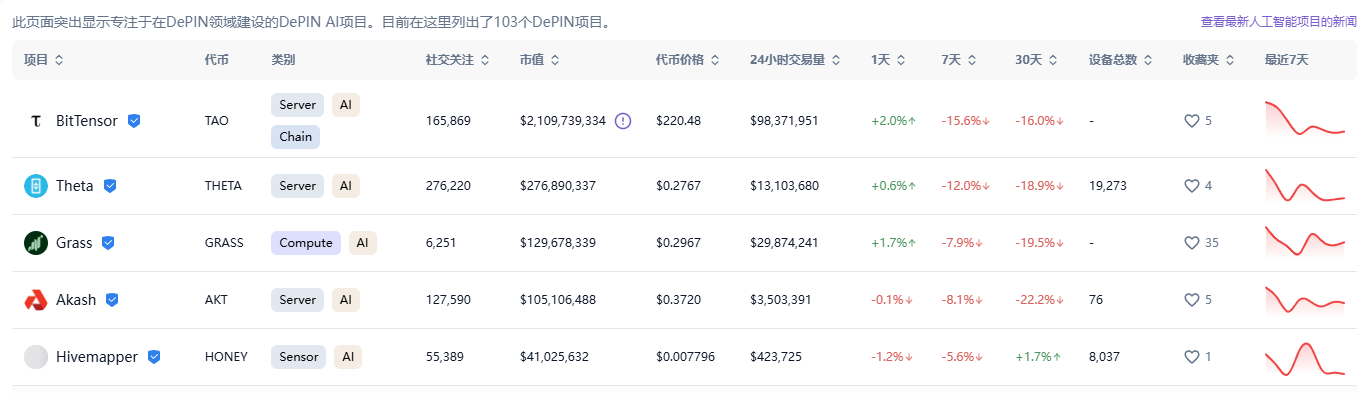 DePIN AI赛道,来源DePINscan
