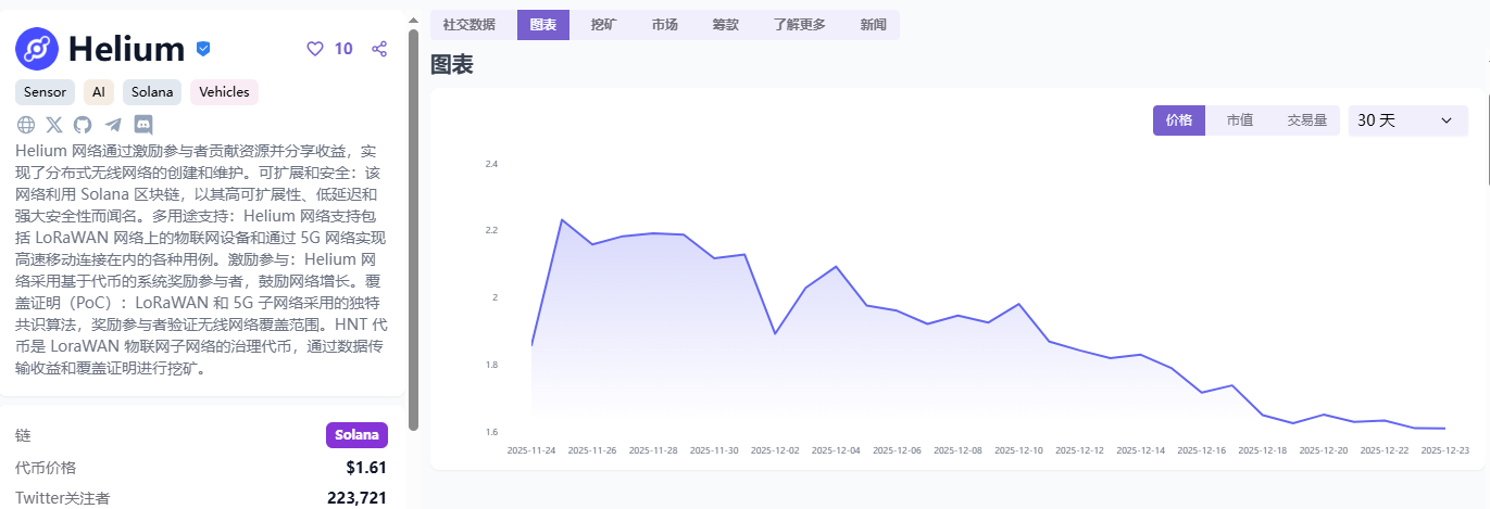 Helium项目,来源DePINscan