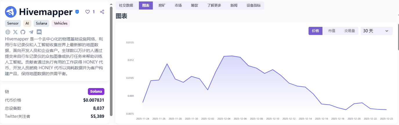 Hivemapper项目,来源DePINscan