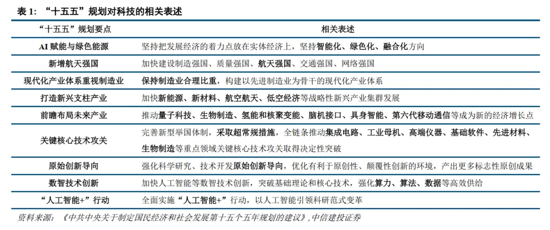 建筑:“十五五”规划建议强调建设现代化产业体系和加快实现高水平科技自立自强,建筑业作为传统产业,既需要在地产下行和存量基建时代寻求新增长来源,也需要依托产业升级和科技进步,为新质生产力构建现代化基础设施体系,赋能产业发展,自身寻求转型,实现产业升级。同时在扩大内需方面新型城镇化建设和城市更新将是投资重点方向,出海将持续为建筑企业贡献增量。建议关注关注赋能现代化产业体系、扩大内需和出海三大方向。