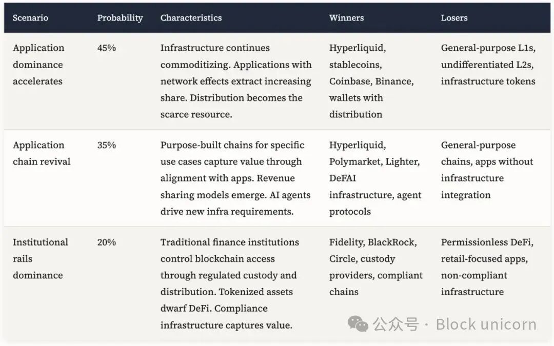 2026 年的周期很可能会涌现出那些能够准确识别新的价值获取动态的赢家。成功的基础设施项目将侧重于优化应用经济效益,而非协议价值获取。成功的应用项目将具备可防御的网络效应、可持续的单位经济效益和分销优势。成功的分销项目将掌控传统金融、社交平台和机构渠道的用户获取。共同点在于,成功需要理解成熟的区块链技术栈中价值的积累点,而这种理解在 2025 年发生了根本性的变化。