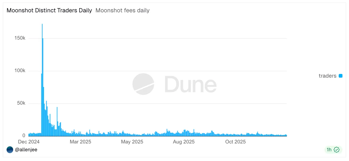 然而,多数用户并未长久驻留。他们为追逐速成之利而来,离场亦同样迅疾。他们的活动既未扩散至其他服务,也未产生任何持续的溢出效应。市场虽见大量流入,却仅仅产生了一次性的参与热度。