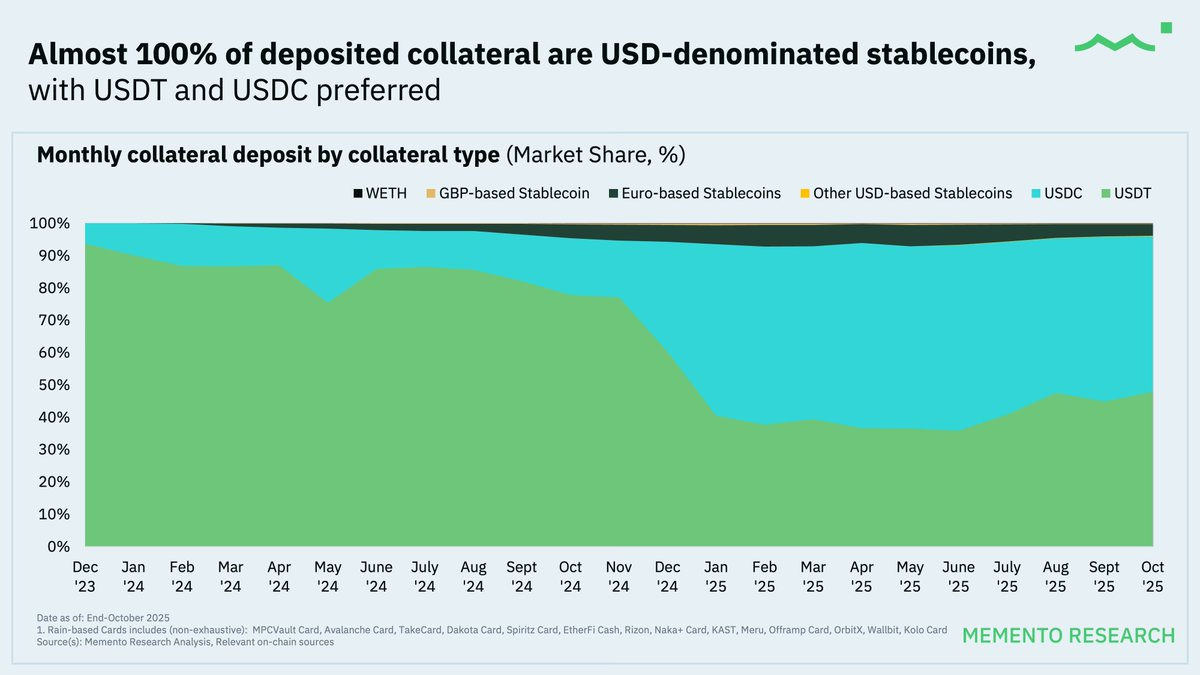 存款主导消费:稳定币在存款行为中占据主导地位,占据了几乎所有的抵押资产份额,进一步强化了类似借记卡的低波动性消费模式。