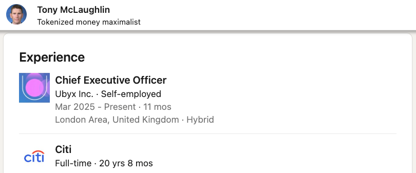 Ubyx由支付领域资深人士Tony McLaughlin于2025年3月创立,其曾在花旗工作逾20年,负责支付及现金流管理。
