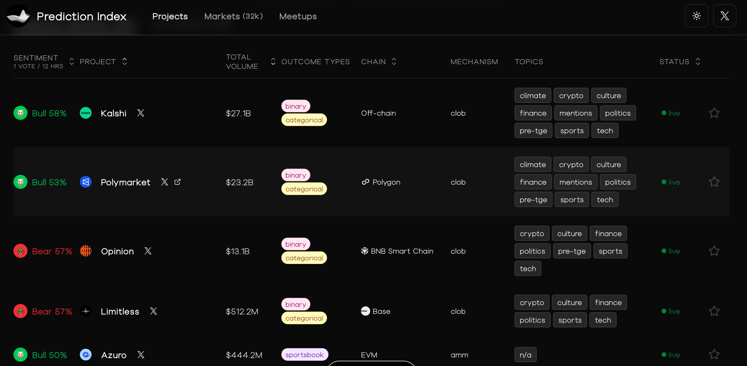 当然,如同我们之前在《只有一成预测市场能活到年底,并非危言耸听》所提及的那样,赛道热门,并不代表着所有的项目、平台都能活得滋润。对于我们这样的普通玩家来说,考虑到流动性深度以及资金仓位分配等条件限制,或许专精于 1-3 个主流平台是更好的选择。