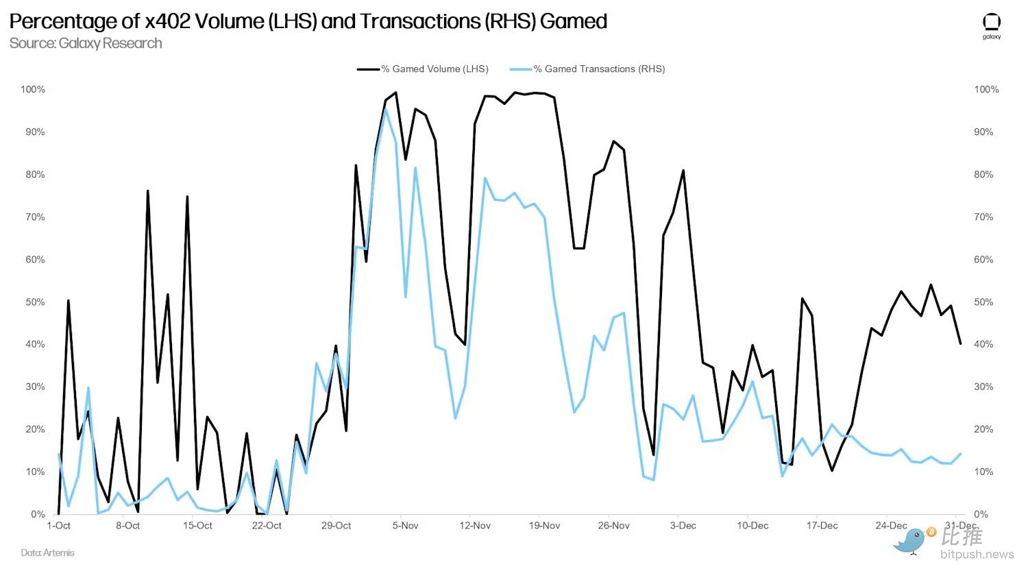 这正是加密领域无需许可的产品的本质。最初的投机用例吸引用户,然后吸引开发者,他们开始试验技术并构建超越投机用例的应用。事实上,筛选掉所有游戏化交易后(Artemis Analytics 定义为明显的自我交易或刷量交易),显示出自 12 月初以来,此类交易占比已降至 50% 以下。