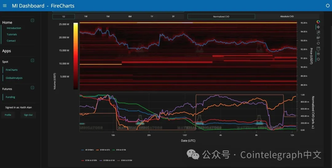 BTC/USDT订单簿数据及巨鲸活动。来源:Keith Alan/X