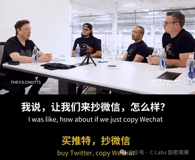 这个路径,其实和微信极为相似,马斯克也曾官宣过要学习微信。