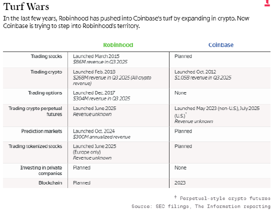 Robinhood不仅行动更为敏捷,还在蓬勃发展的预测市场领域投入重金。2024 年末,该平台率先推出以美国总统大选结果为标的的事件合约,随后迅速将业务拓展至体育赛事等更多领域的合约产品。预测市场业务一跃成为Robinhood增长最快的收入来源,以去年 10 月的单月数据测算,该业务年化收入已达 3 亿美元。同年 11 月,Robinhood进一步加码这一业务,与国际金融服务公司萨斯奎汉纳集团合作收购了一家可支持预测市场运营的交易所。