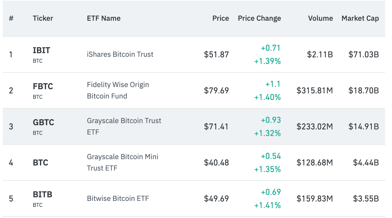 Top 5 BTC 现货ETF持仓量,数据来源:Coinglass
