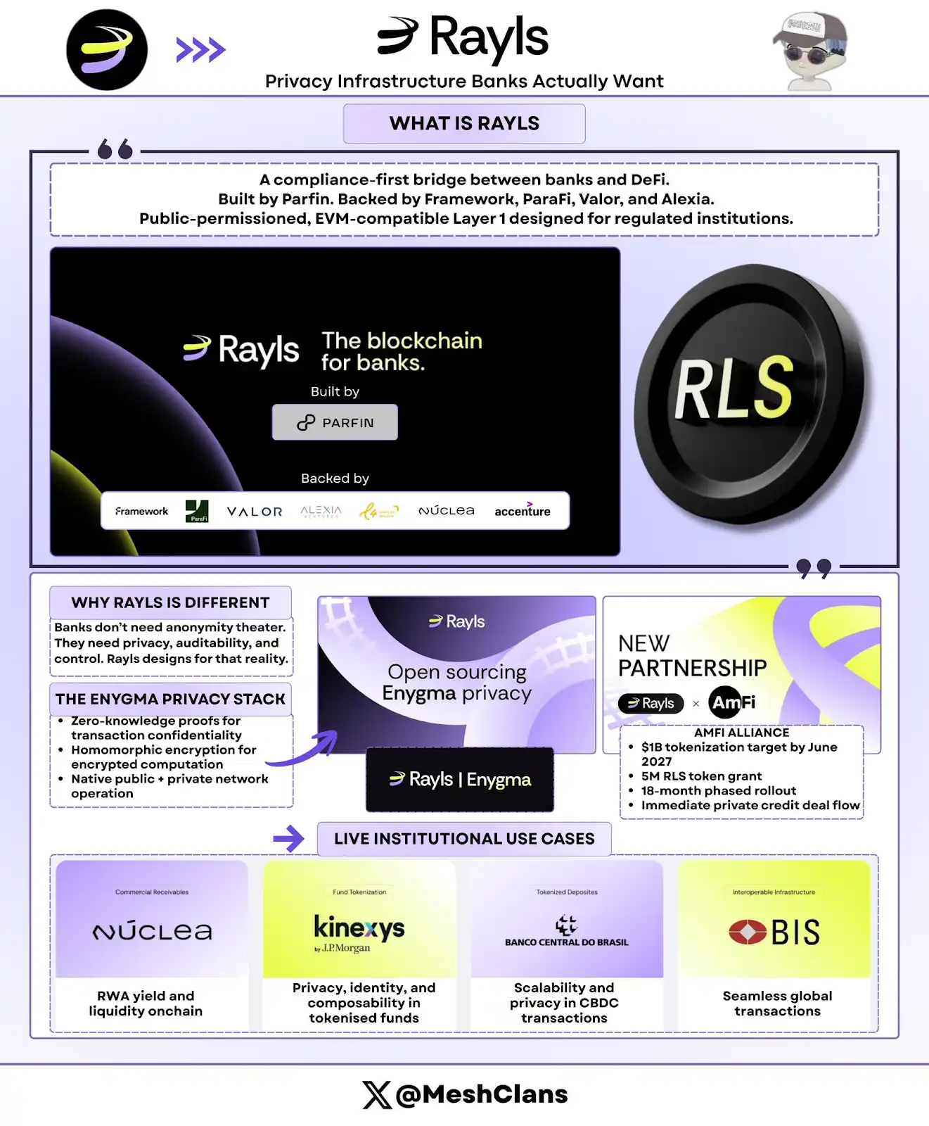 我已经关注其Enygma隐私技术栈开发一段时间了。关键不是技术规格,而是其方法论。Rayls正在解决银行真正需要的问题,而不是迎合DeFi社区对银行需求的想象。