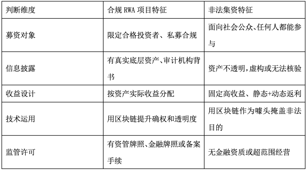 (二)一表说清:RWA是否构成非法集资的判断维度