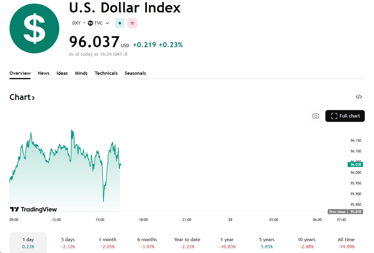 通过 TradingView 的 DXY 图表可以清晰看到,黄金和白银近期的强势表现,实际上是传统资金在进行防御性配置。而比特币在 85,000-90,000 美元区间的横盘,更像是一种“聪明钱”的避险行为——既不愿离场踏空潜在的牛市,又不敢在靴子落地前全仓梭哈。