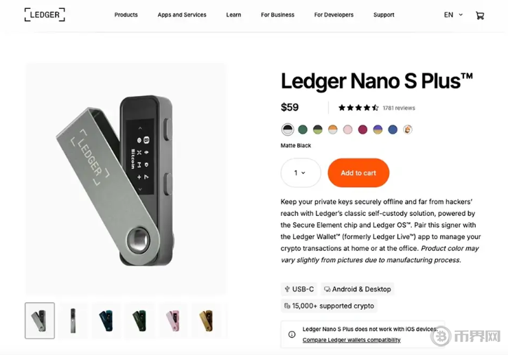 Ledger Nano S Plus采用银行级安全芯片,市场份额稳居硬件钱包前列。它的优势在于支持超过5500种加密货币,同时通过Ledger Live应用提供简洁的资产管理界面。