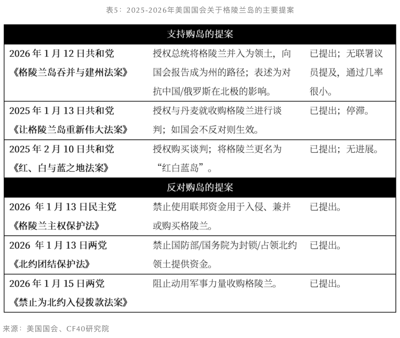 预计直接购岛将受到较大的法律与预算约束。根据美国宪法,任何形式的领土购买都需要国会批准拨款;根据1973年《战争权力决议》,任何针对盟友的军事行动要求总统48小时内通报国会,60天内获授权,否则撤军。尽管特朗普试图利用“国家紧急状态”绕过法律约束,但国会的跨党派参议员正在酝酿新的《战争权力决议》,计划从法律层面挑战总统退出北约或发动战争的权力。