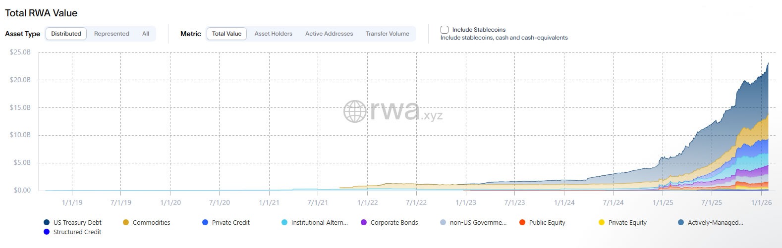 数据显示,过去12个月链上代币化现实世界资产(RWA)规模增长了92%。来源: RWA.xyz