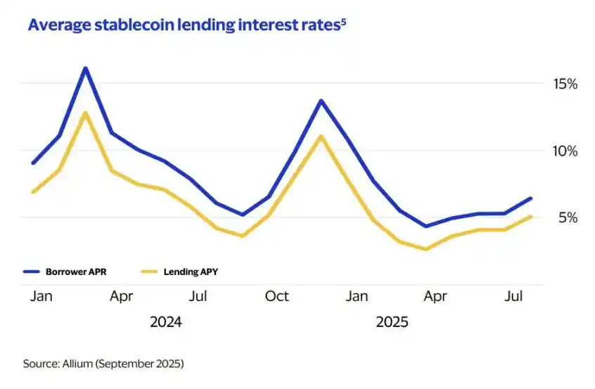 这种终结最直观的例子是稳定币 Borrow APR 已经低至 6.4%,考虑到过去五年借贷规模已经累计增长至 6700 亿美元,规模庞大但是利率稳定将成为常态。