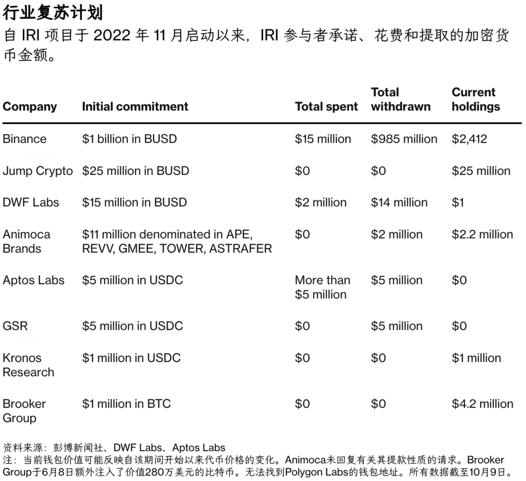 事实上,早在 2023 年,IRI 已经停止运作,而众多承诺的出资方,比如 Jump/GSR/Kronos 等做市商实际根本未出资,因为龙头老大币安只花了 1500 万美元,就把剩余的 9.85 亿美元提走了。