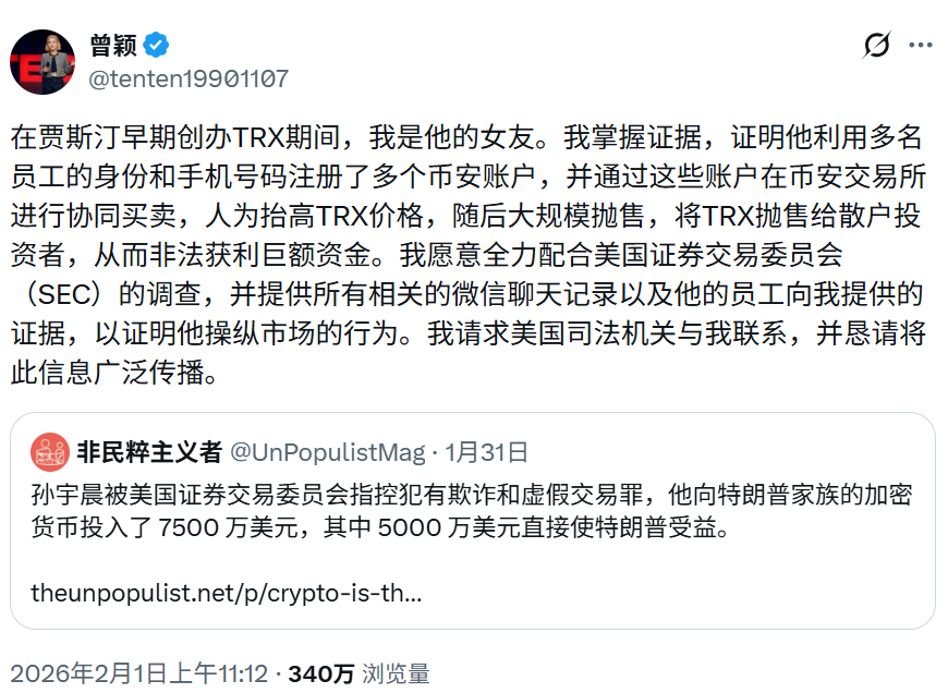 截至2026年2月1日,币安和SEC均未就曾颖的这些新指控发表公开评论。