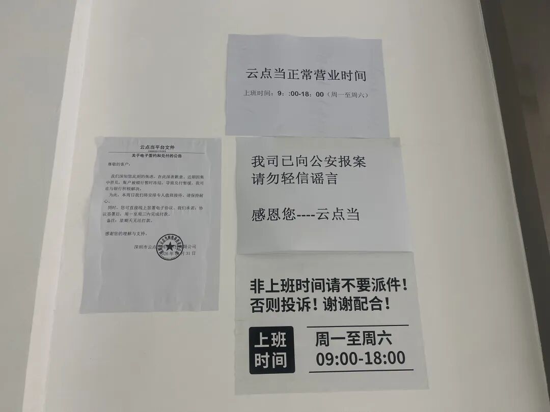 2026年1月31日,云点当在一份的公告中表示,“近期,受行业个别平台风险事件波及,导致我司资金流动性出现一定的挤兑。我司对某两家公司的相关款项,目前回收困难。尽管短期内回收希望渺茫,但我们已将该债权情况向政府相关部门完成报备,并保留一切法律追索权利。”