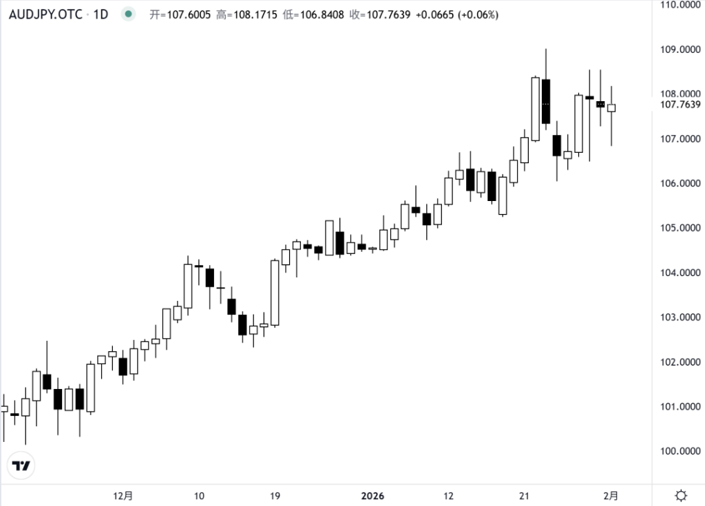 日元的疲弱更不必说,根据朝日新闻民调,高市早苗领导的执政联盟有望在众议院选举中获得超过300席(共465席),如果选举结果不出现重大变故,高市早苗后续的财政刺激计划大概会推行地更为顺畅,奠定JPY长期走弱的基础。所以这两天JPY几乎是跟着美指同步走弱,AUDJPY这个风险情绪指标也不灵了。