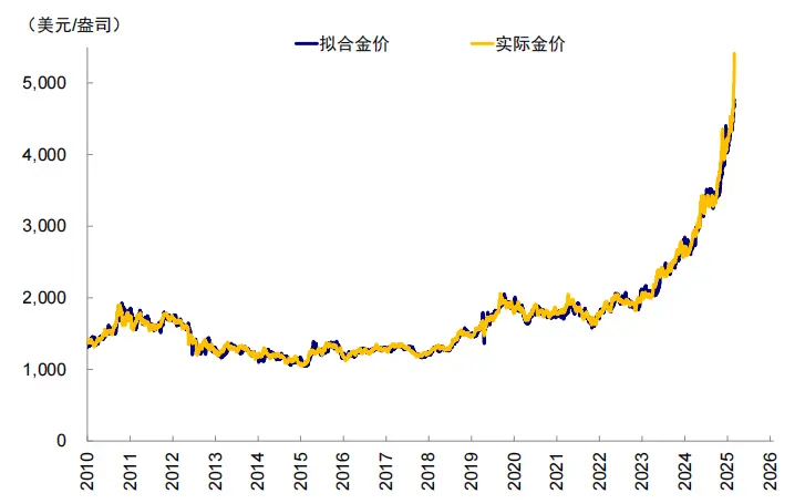 ► 是因为地缘风险下的避险需求吗?也是重要因素。2022年以来地缘风险频发,2025年特朗普再度当选总统并发起“对等关税”后,美国经济政策不确定性指数快速攀升,对应金价上行斜率变陡。