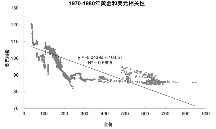 图表10:70年代金价和美元的R2为0.57