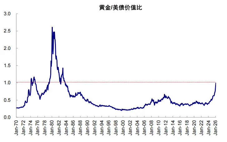 ► 相对价值的“缩水”:黄金名义价值与美债的比值自2022年0.35持续抬升至当前的0.99,这一指标的持续抬升反映了投资者对美元主权信用资产偏好的边际下降,转而向实物黄金寻求终极的价值避险。