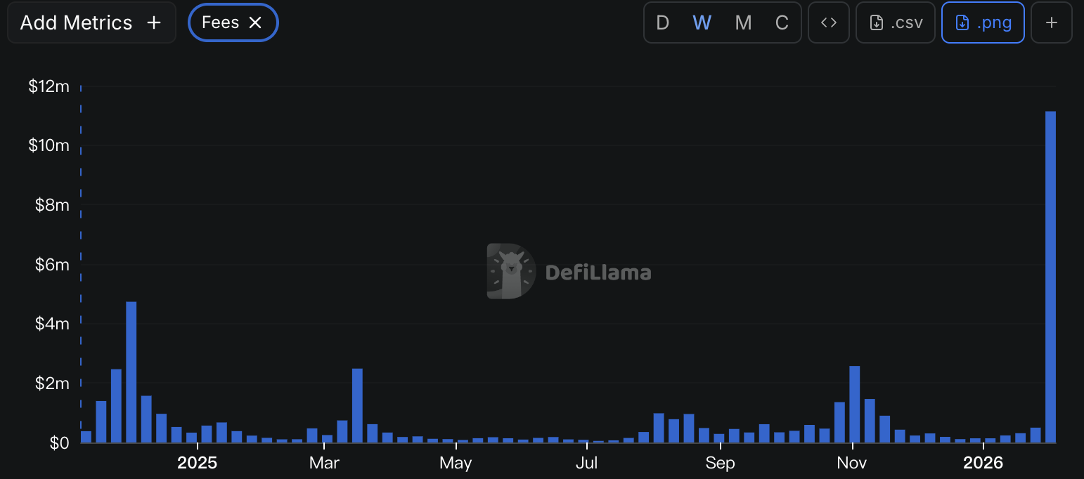 与此同时,受益于Moltbook的AI Agent发币热潮,相关平台的用户活跃度和流量随之暴涨。比如,Base上的发射器Clanker协议费用在近一周超过1100万美元,创历史新高,且代币创建数也接近历史峰值。