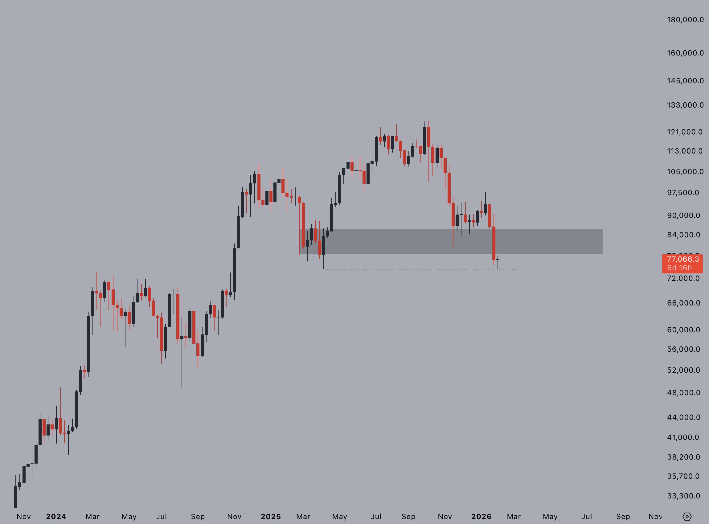 BTC/USD周线图。来源:Jelle/X