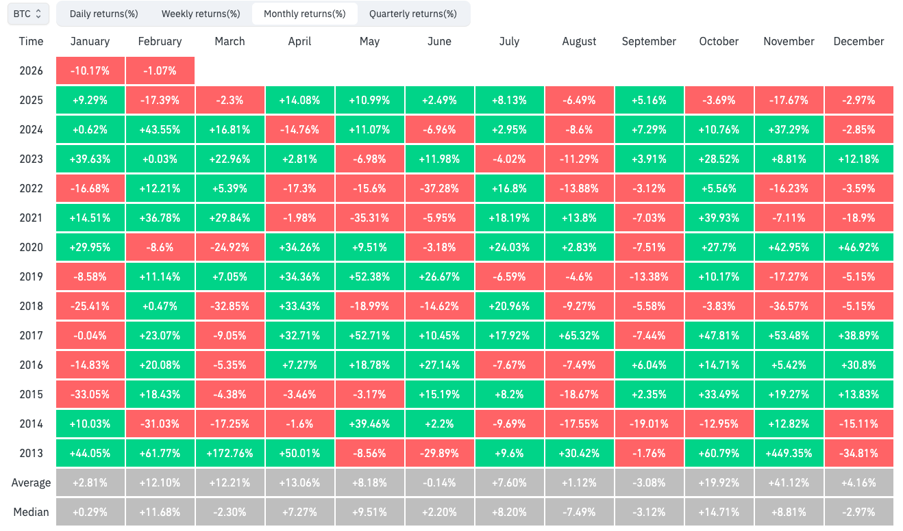 BTC/USD月度收益率(截屏)。来源:CoinGlass