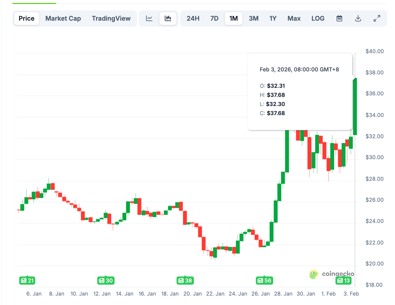 受此利好消息刺激,HYPE代币价格强势突破38美元关口,显示出市场对这一新功能的强烈信心。