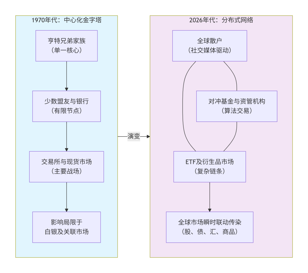 2026年的“白银幽灵”,已不再是亨特兄弟那个具体而微的巨鳄形象,而是一个无形、分散、具有全球即时传染性的系统现象。