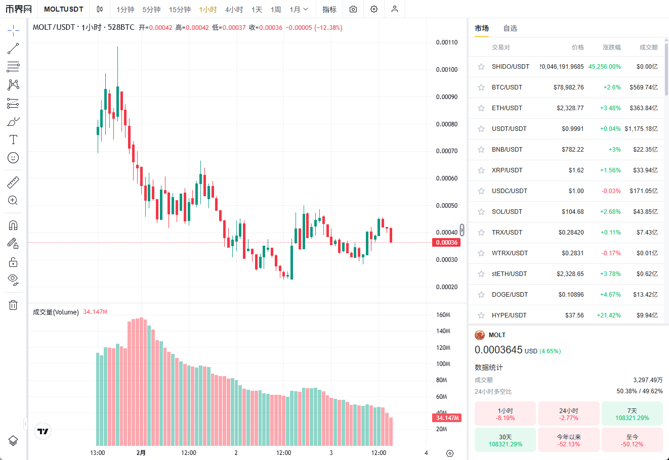 最具代表性的案例是$MOLT。该代币部署在Base网络,上线后迅速被交易机器人与社区捕捉,在FOMO情绪推动下,两天内市值冲至约1.2亿美元,随后大幅回落。