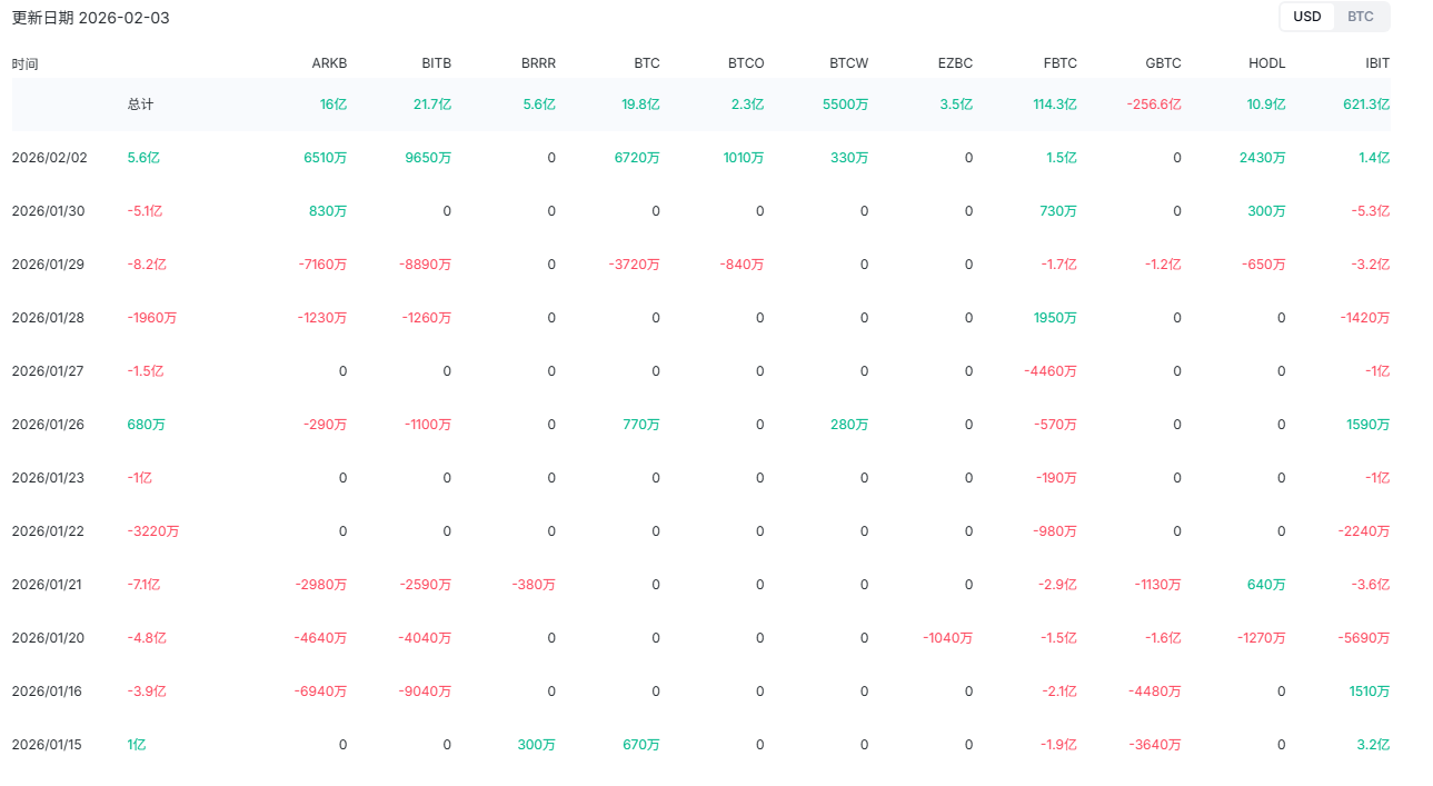 在昨日,比特币价格于75,000美元附近企稳后,进入晚间的美国比特币现货 ETF 的交易时段,华尔街资金流向出现了非常明显的改善。数据显示,华尔街比特币现货ETF的单日净流入资金自1月16日以来首次突破1亿美元,当日合计净流入规模达到5.6亿美元。也由此,终结了华尔街此前连续10日大规模资金净流出的惨烈景象。