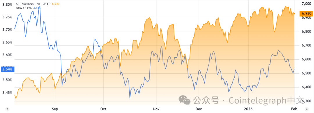 周一,美国2年期国债收益率维持在3.54%,与三周前持平。若对美债的需求激增,收益率大概率将跌破3.45%,类似于2025年10月美国经历长时间政府停摆及非农就业数据走弱时的情形。