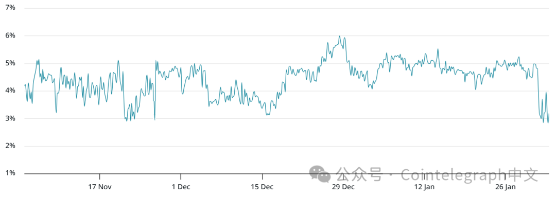 现货比特币ETF自1月16日以来累计净流出32亿美元,令交易员担忧进一步蔓延。即便如此,这一数额仅占产品管理资产不足3%。Strategy(MSTR US)也受到无端猜测影响,其股价低于净资产值,引发市场对公司可能抛售部分比特币的担忧。