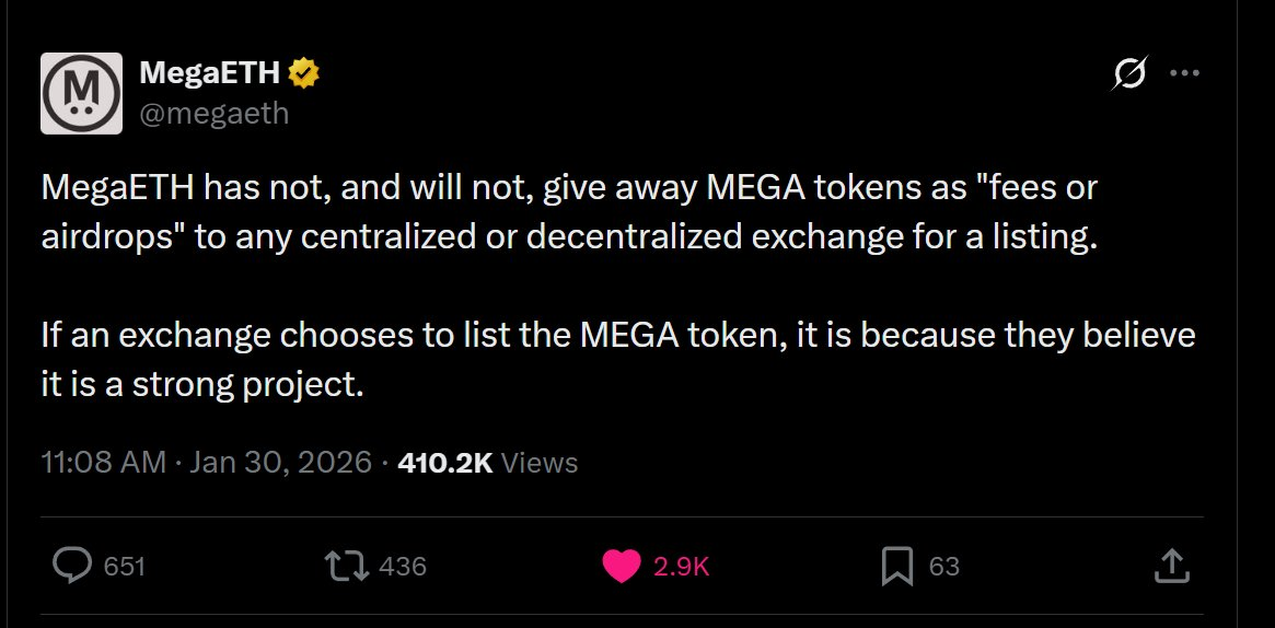 在币安在其平台上开放 MEGA 代币期货后(币安历史上试图以此向团队勒索),你可以在 MegaETH 对 CEX 上币的哲学中看到同样的理念: