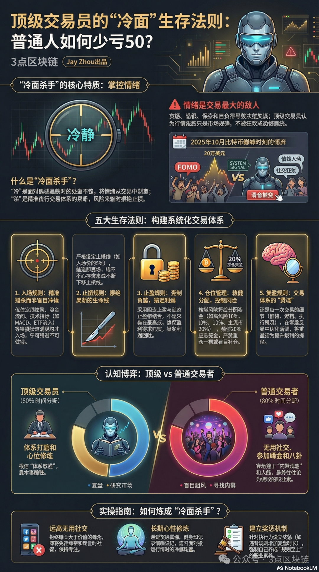 这就是币圈最真实的生存法则:真正顶级的交易员,从来都不是光鲜亮丽、频繁出现在各类峰会、热衷玩乐社交的“社交达人”,而是一群“冷面杀手”。他们不被情绪左右,不被外界干扰,以系统化思维规范每一次操作,以极致复盘打磨每一个细节,平时把所有心思都花在完善交易体系上,而非纠结于去哪里玩、去哪里参会。他们深知,币圈的盈利从来都不是靠运气、靠人脉、靠狂欢,而是靠扎实的交易体系——唯有守住本心、深耕体系,才能在暴涨暴跌的行情中稳坐钓鱼台,才能真正靠交易本事赚大钱。