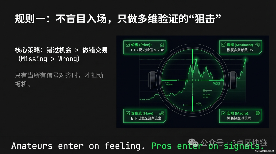 反观普通交易者,大多没有明确的入场规则,入场全凭感觉:看到别人晒盈利,就盲目入场跟风;听到小道消息说“某币种即将暴涨”,就急于入场抄底;看到行情暴涨,就忍不住追高入场。他们从来不会去验证入场信号,从来不会去考虑风险,从来不会去思考“这次入场,我有多大的把握盈利”。他们就像一群盲目冲锋的士兵,没有战术、没有规划,最终只会沦为市场的“炮灰”。